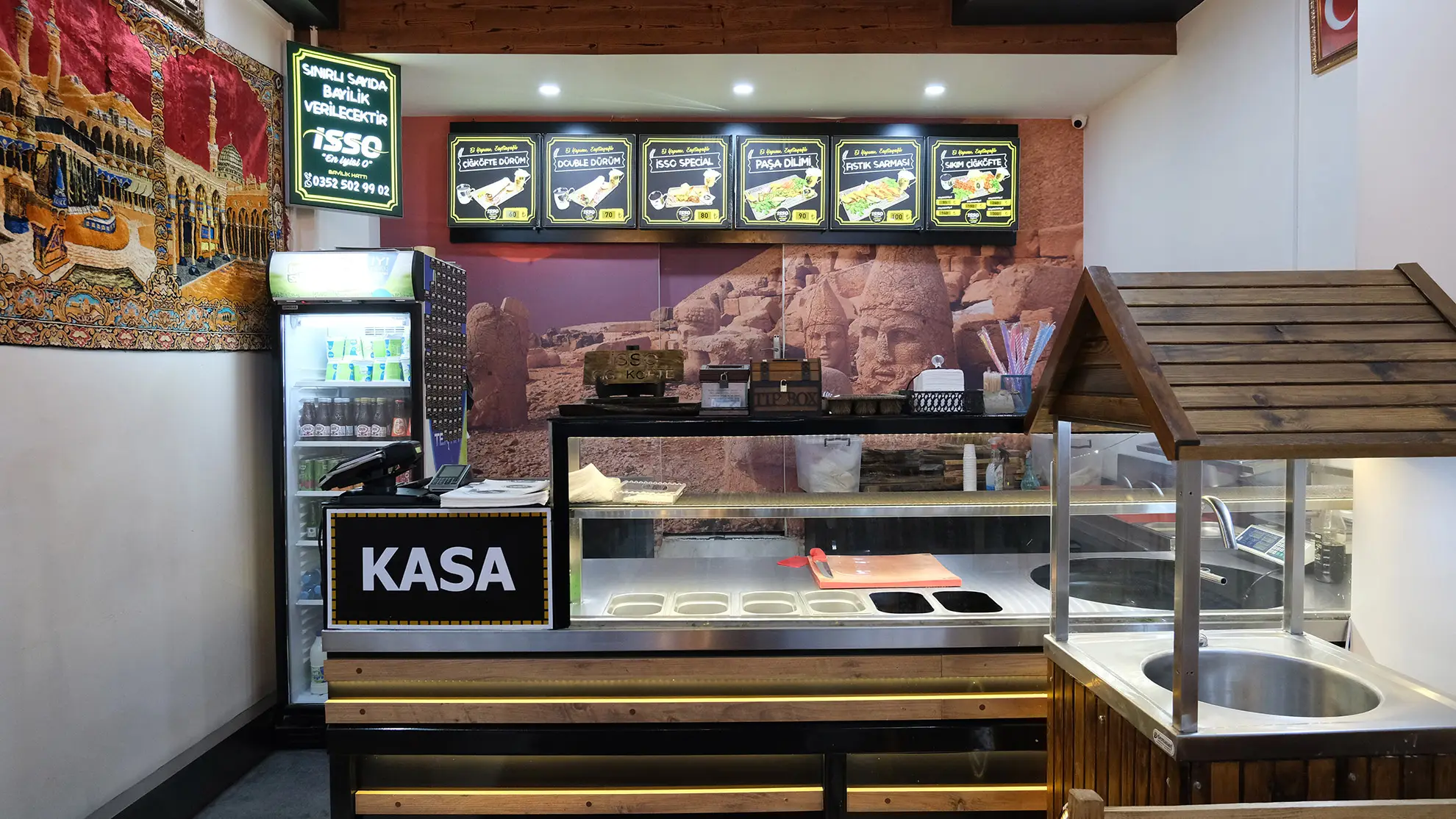 Konseptlerinde, işletme alanının minimum 40 m² olması ve ön cephe genişliğinin en az 5 metre olması gerekmektedir. yeterlidir ve sadece çiğ köfte satışına odaklanmaktadır.